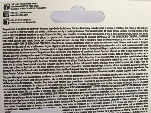 Temparin Max Dentek Lost Filling and Loose Cap Repair, One Step Instant Pain Relief, 5 Plus 0.0...