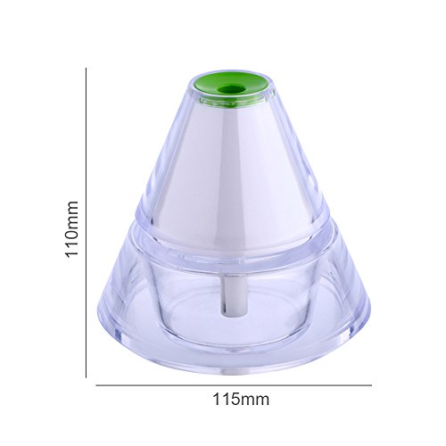 Studio : LianLe Publisher : LianLe Binding : Kitchen Product Description Specifications: 1. Material: Acrylic ABS electronic components 2. Size: about 115*115*110 mm/4.53*4.53*4.33 inch 3. Net weight: about 241 g 4. Water tank capacity: 140ML 5. Spray: 30ml (H) 6. Use time: 2 hours, automatically cut off the power after 2 hours for protection. 7.Rated voltage: 5V 8. Rated power: 2W Usages: 1. Press the ON/OFF button once to boost spraying and LED changeable flashing functions. 2. Press the button one more time, if you don't want the flashing light. 3. The third pressing to replace the LED flashing light with warm white night light, and turn off spraying function. 4. Press the ON/OFF button again to shut down the whole system. 0