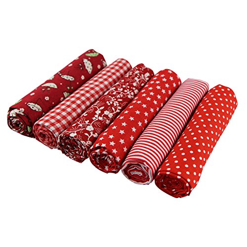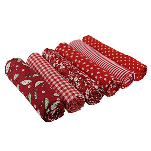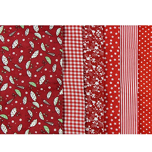 UOOOM 6pcs 50 x 50cm Patchwork Cotton Fabric DIY Handmade Sewing Quilting Fabric Different Designs (Tone-Red)