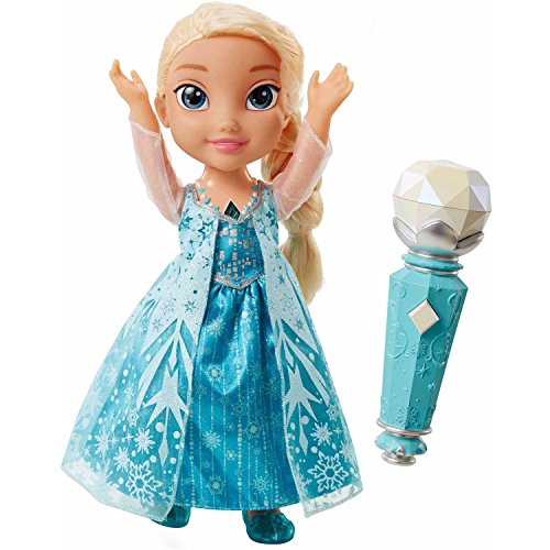 -. Feature : Use the real working microphone to start singing the FULL-LENGTH movie version of "Let it Go" / Place the microphone in front of Elsa and she'll pick up where you left off! Pass the mic back and forth to create the perfect duet! / Elsa says 15+ magical phrases and sings in English / Elsa's dress and necklace magically lights up! / Light up Necklace Included for Child