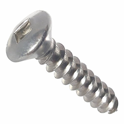 #8 x 1" Oval Head Sheet Metal Screws, Square Drive, Stainless Steel 18-8, Full Thread, Bright Finish, Self-tapping, type A, Quantity 100