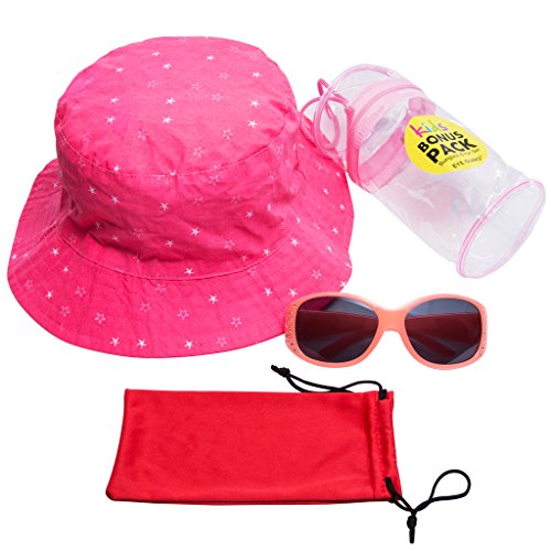 EYEGUARD Crystal Design UV400 Kids Sunglasses and Beach Sun Hats Combo Children