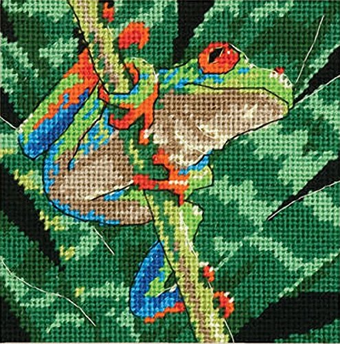 Red-Eyed Leaf Frog Mini Needlepoint Kit-5"X5" Stitched In Thread