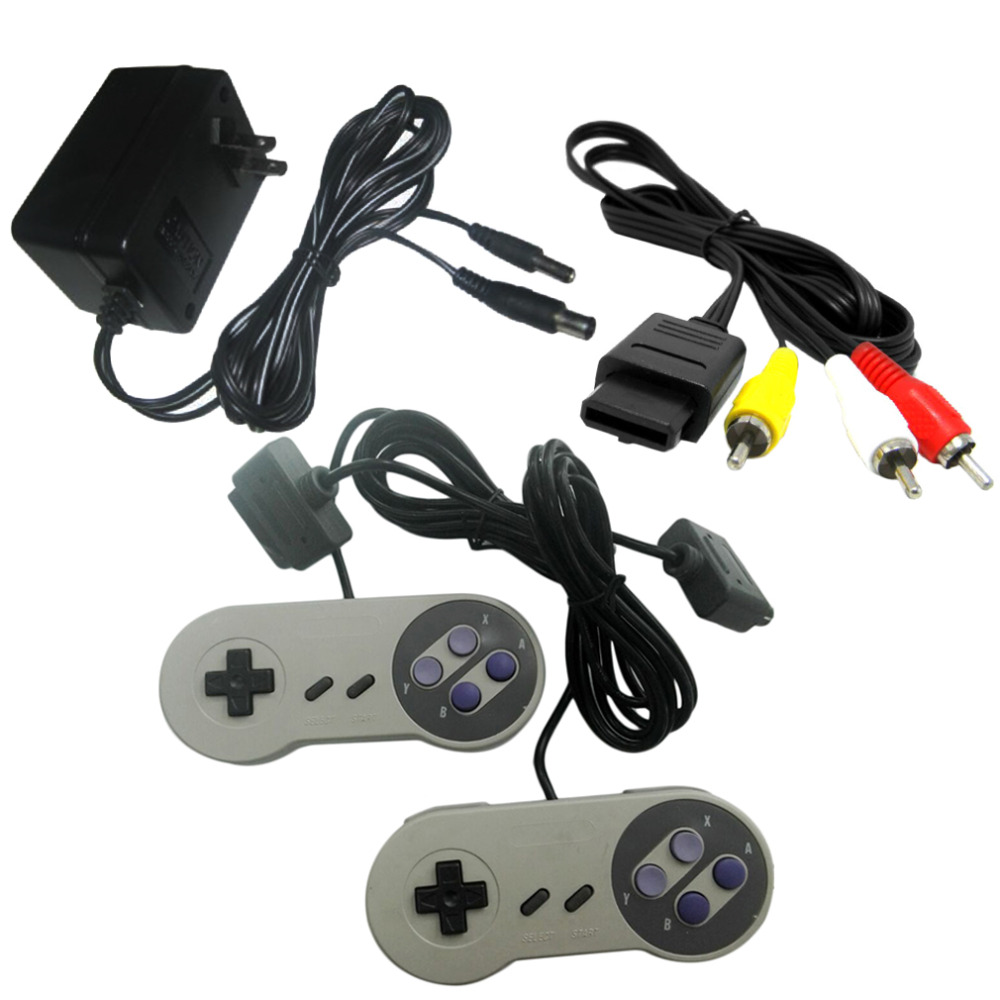 | Features: 100%Brandnewandhighquality! TwobrandnewcontrollersonenewACAdapter&onenewsetofAVCables. CompatiblewithSuperforNintendoSNESsystems. Thisisagreatstartersettogetthegamergoing. ForloversofOldSchoolRetroForSNESgamesthesecontrollerspoweradapterandAVcableswillbringbacktheglorydaysforNintendo Specifications: Condition:brandnew Quantity:1pc Color:Black+gray PackageIncluded: 1xACPowerAdapterwithcord 1xAVVideoCable 2xControllers |