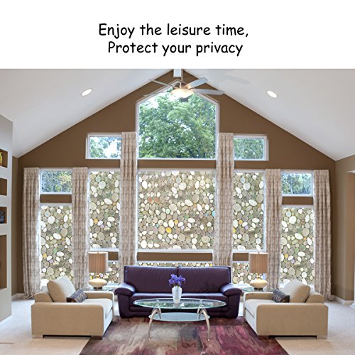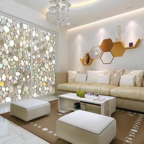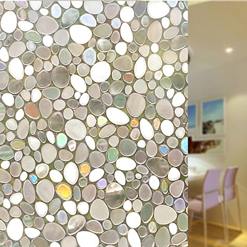 3D Window Privacy Film of Godmorn, Non Adhesive Static Cling Sticker Decorative Tinted Film ,suitable for Frontdoor, Bathroom, Kitchen, Study,Living room, Cobblestone Pattern,17.7 by 78.7 inches