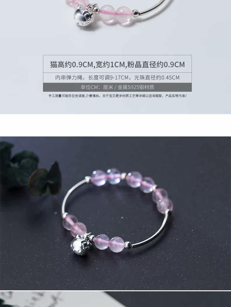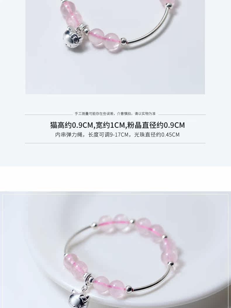 宝贝尺寸 :周长16cm左右 u0026nbsp;粉水晶是8mm u0026nbsp;吊坠8mm