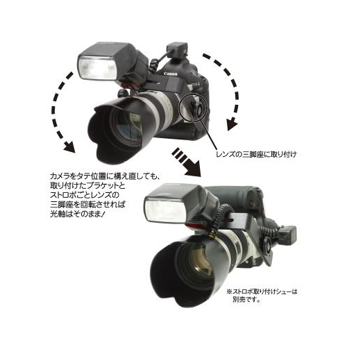 ●レンズ側の回転式三脚座に取り付けるストロボアジャスター。