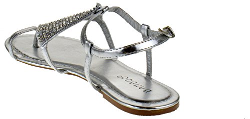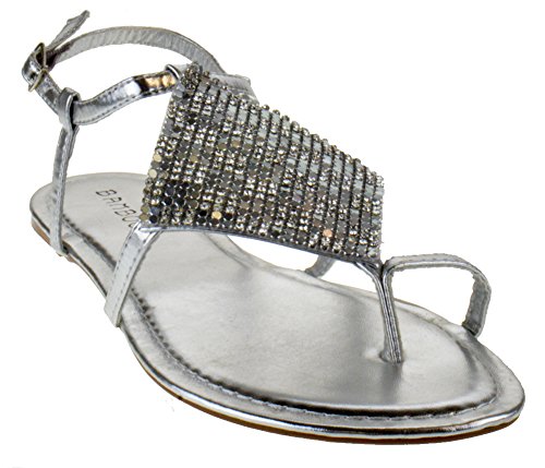 Giggle 01 Gladiator Rhinestone Mesh Thong Flat Sandals Silver