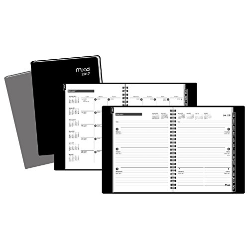 -. Binding : Office Product -. Brand : Mead -. EAN : 0038576269170 -. Feature : 12 month (January - December) executive weekly / monthly appointment book / planner / Weekly: one week across two-page spread; monthly tabbed dividers; removable telephone/address section; valuable reference information / P.R.Inted on quality paper containing 30% post-consumer waste; available in Black or Gray - Please note color choice is not available to customer, the color will be selected at random for you. -. Label : ACCO Brands -. Manufacturer : ACCO Brands -. Model : TLD54610 -. MPN : TLD54610 -. NumberOfItems : 1 -. PackageQuantity : 1 -. PartNumber : TLD54610 -. ProductGroup : Office Product -. ProductTypeName : OFFICE_PRODUCTS -. Publisher : ACCO Brands -. Studio : ACCO Brands -. Title : Mead Weekly / Monthly Planner / Appointment Book 2017, Executive, 6-7/8 x 8-3/4", Color Selected For You May Vary (TLD546-10) -. UPC : 038576269170
