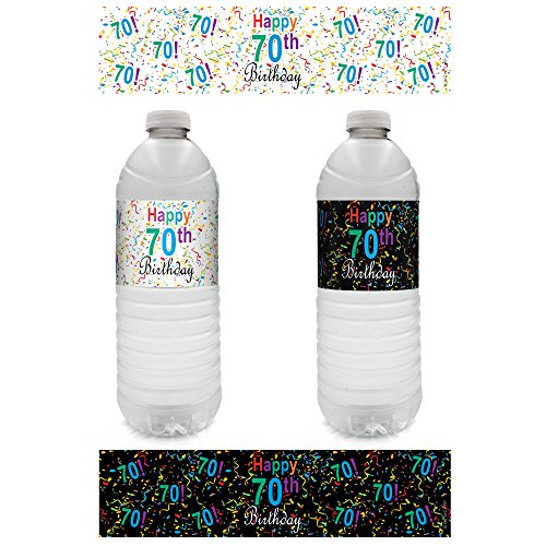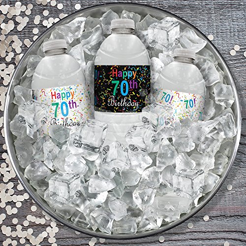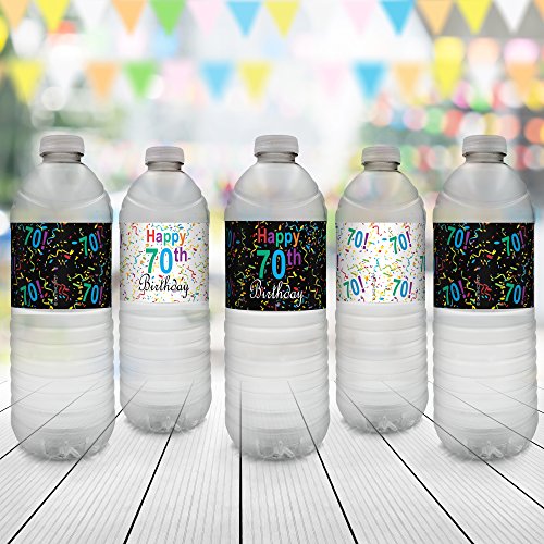 70th Birthday Party Water Bottle Labels - Multi-Colored (20 Count)