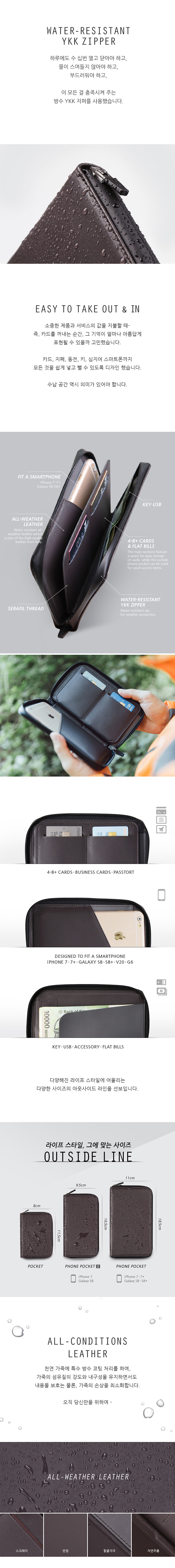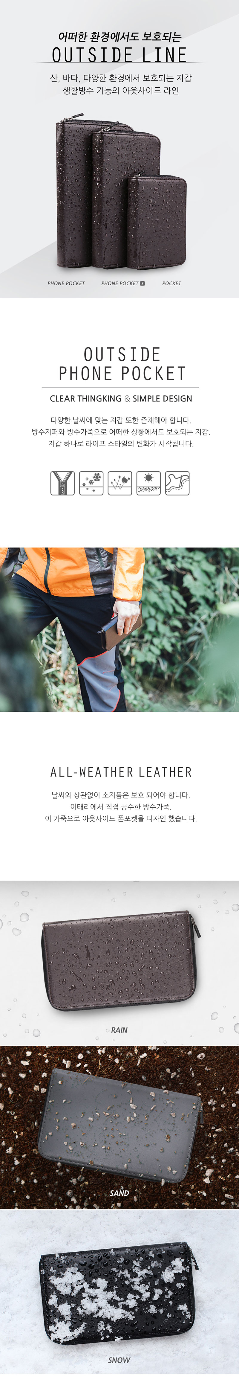 방수지퍼와 방수가죽으로 어떠한 상황에서도 보호되는 지갑.