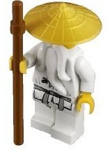 -. Feature : L.E.G.O Ninjago Sensei Wu Minifigure / Gold Hat / Brown Staff / Approximately 1.5" tall