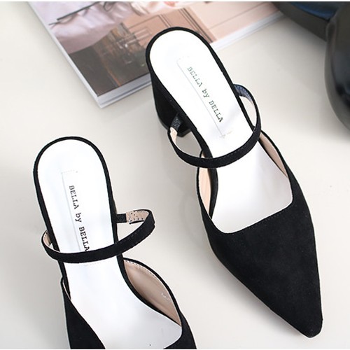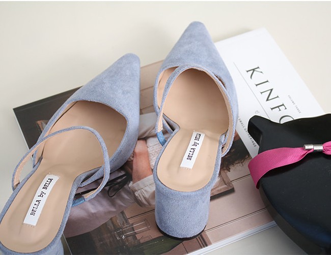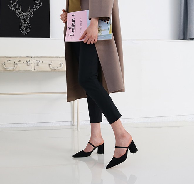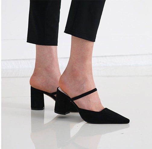 商品名:パンプス レディース ミュール ポインテッドトゥ チャンキーヒール 太ヒール スエード調 2018 春 ファッション 靴 婦人靴