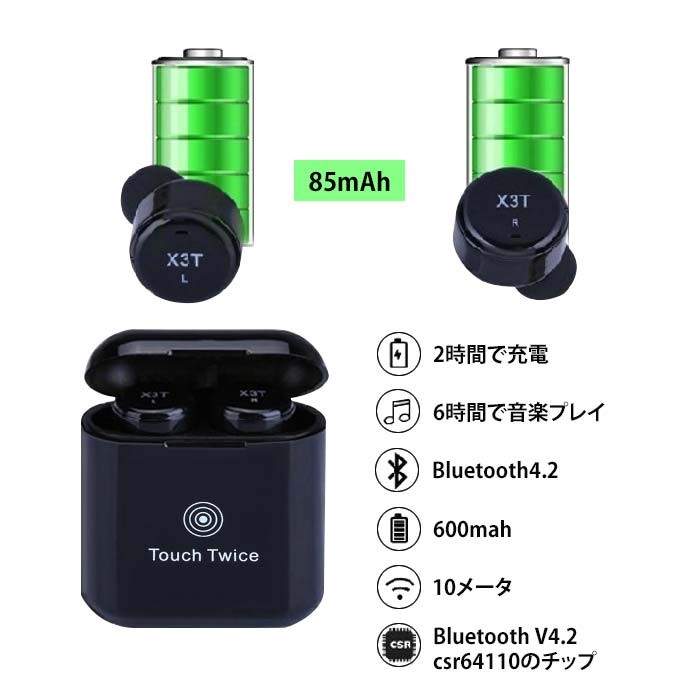 連続音楽再生:単耳約6時間、両耳約3時間