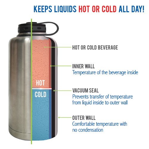 Fifty/Fifty Vacuum-Insulated Stainless Steel Bottle with Wide Mouth - 64 oz. Capacity
