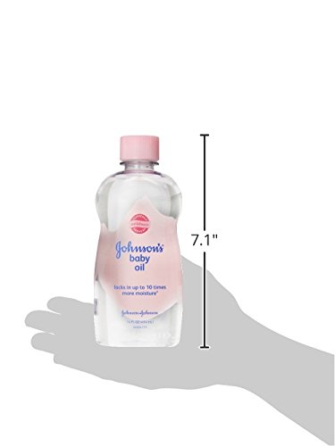 Studio : Johnson's Publisher : Johnson's Binding : Grocery Product Description JOHNSON'S Baby Oil locks in up to 10 times more moisture for baby-soft skin. Formulated to help moisturize babies' delicate skin and great for relieving your dry, rough patches, this baby oil is a clinically proven mild and gentle formula for your baby's skin. Pure mineral oil forms a silky barrier to help prevent excess moisture loss and lock in up to 10 times more moisture on wet skin than an ordinary lotion can on dry skin. Dermatologist- and allergy-tested, this gentle, lightly scented oil leaves skin feeling soft and smelling sweet, and is easy to spread, so it's ideal for baby massage. 0