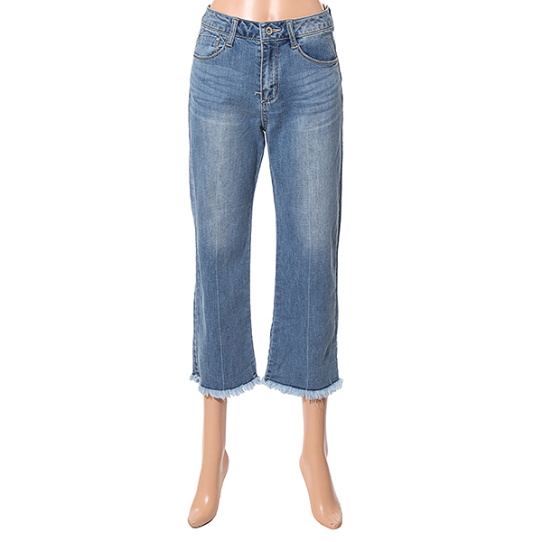 여성 L톤의 인디고 워싱에 캣브러쉬와 레직기선이 포인ㅌ트로 들어간 데님. 하이라이즈 밑위에 전체적으로 루즈하면서 스트레이트하게 떨어지는 크롭 와이드핏. 가변운 소재의 아이템과 코디하리 좋은 아이템. | |