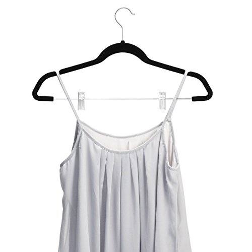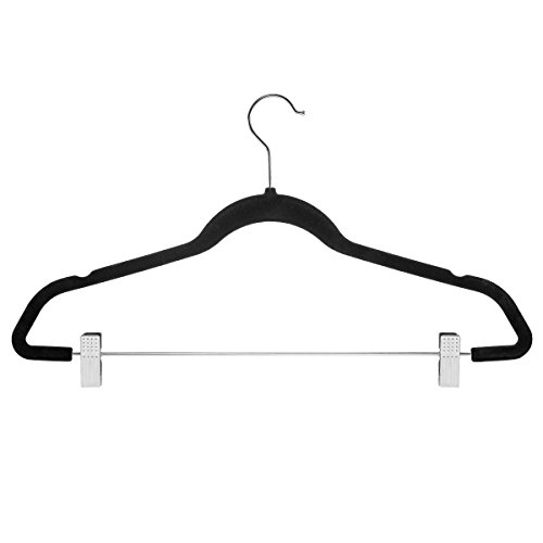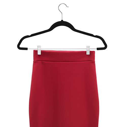 Set of 20 velvet flocked hangers for superior nonslip grip of clothing. The velvet skirt hangers soft texture won’t snag or damage delicate clothing. Versatile and functional these pant hangers allow you to store shirts, and pants or skirts at the same time.