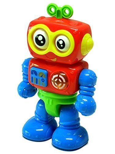 -. Binding : Toy -. Brand : Little Learner -. EAN : 0672552426371 -. Feature : My First Little Robot by Little Learner / Press the button for funny sounds & flashing light - Turn the key for eye rolling / Articulating arms & legs make a clicking noise when moved / Developmental Benefits: imaginative play, sensory development, creative play / Requires 2 AAA batteries (included) - Size: 8 in x 6 in x 3 in - Ages 12+ Months -. Genre : Educational -. IsAdultProduct : 0 -. Label : HAPPY KID TOY GROUP LTD. -. Manufacturer : HAPPY KID TOY GROUP LTD. -. Model : 4263T -. MPN : 4263T -. PackageQuantity : 1 -. PartNumber : 4263T -. ProductGroup : Toy -. ProductTypeName : TOYS_AND_GAMES -. Publisher : HAPPY KID TOY GROUP LTD. -. Studio : HAPPY KID TOY GROUP LTD. -. Title : My First Little Robot by Little Learner - Electronic Sounds, Flashing Light & Rolling Eyes -. UPC : 672552426371