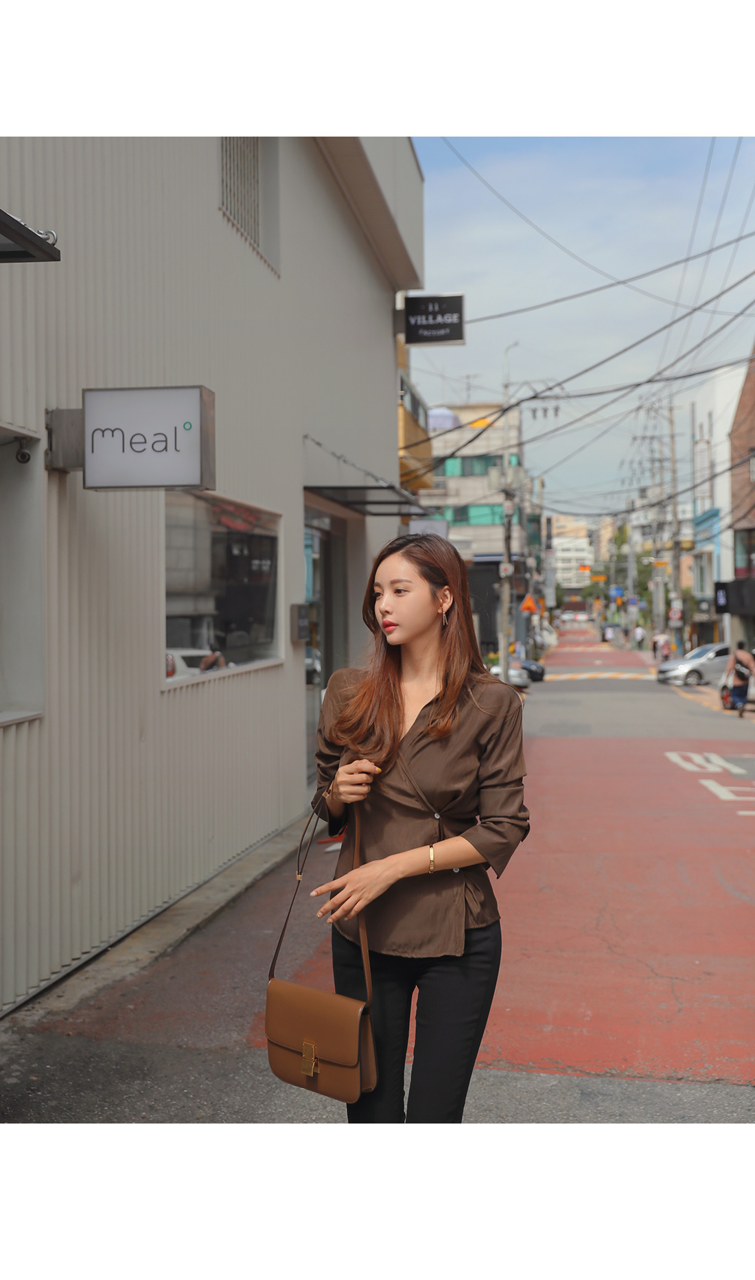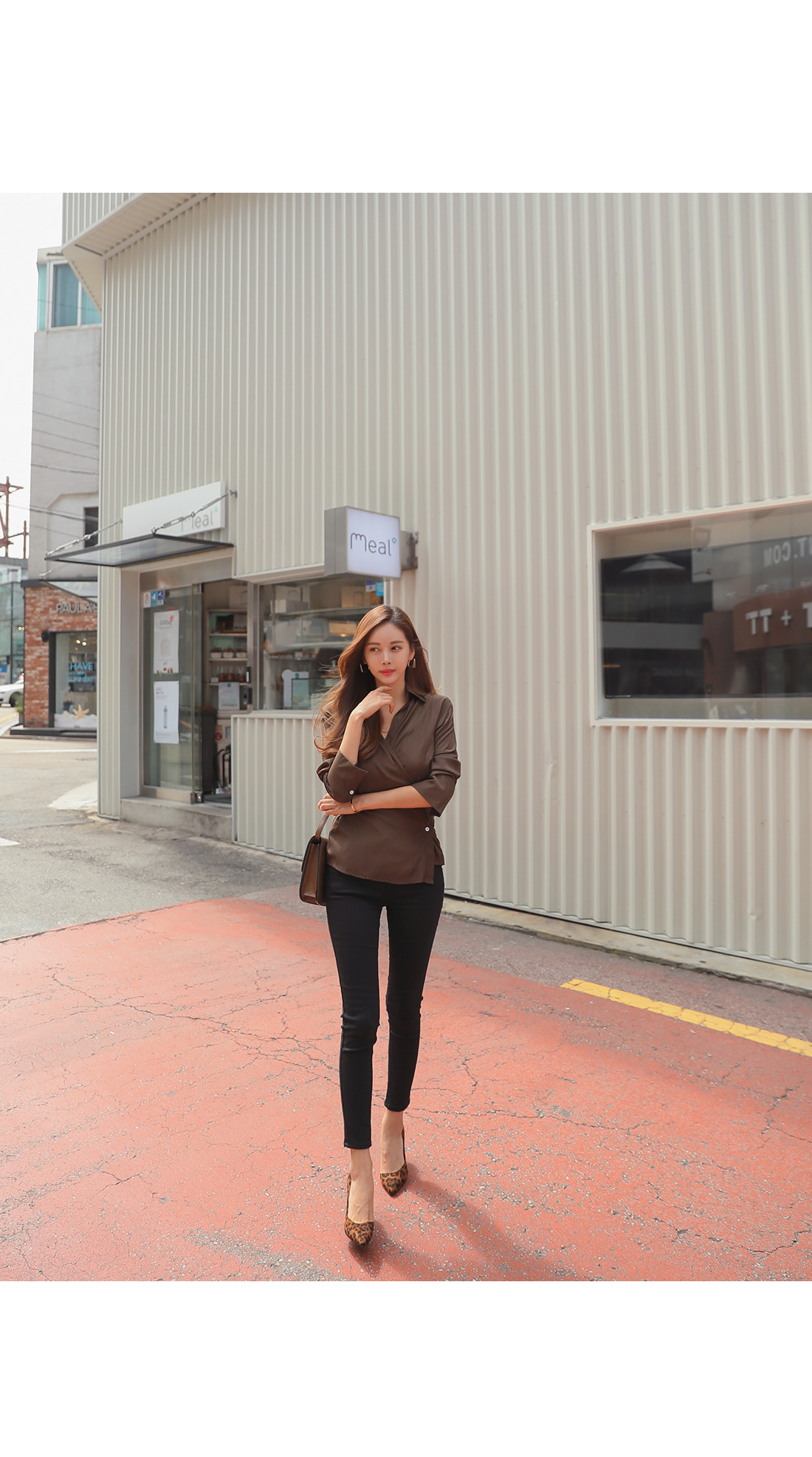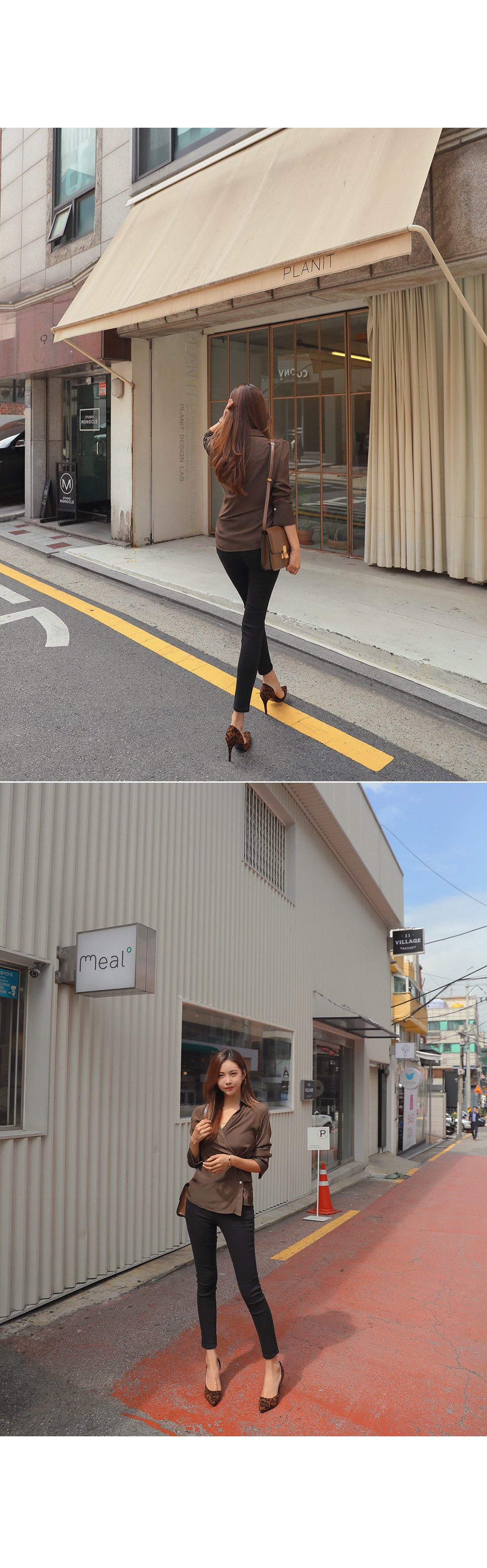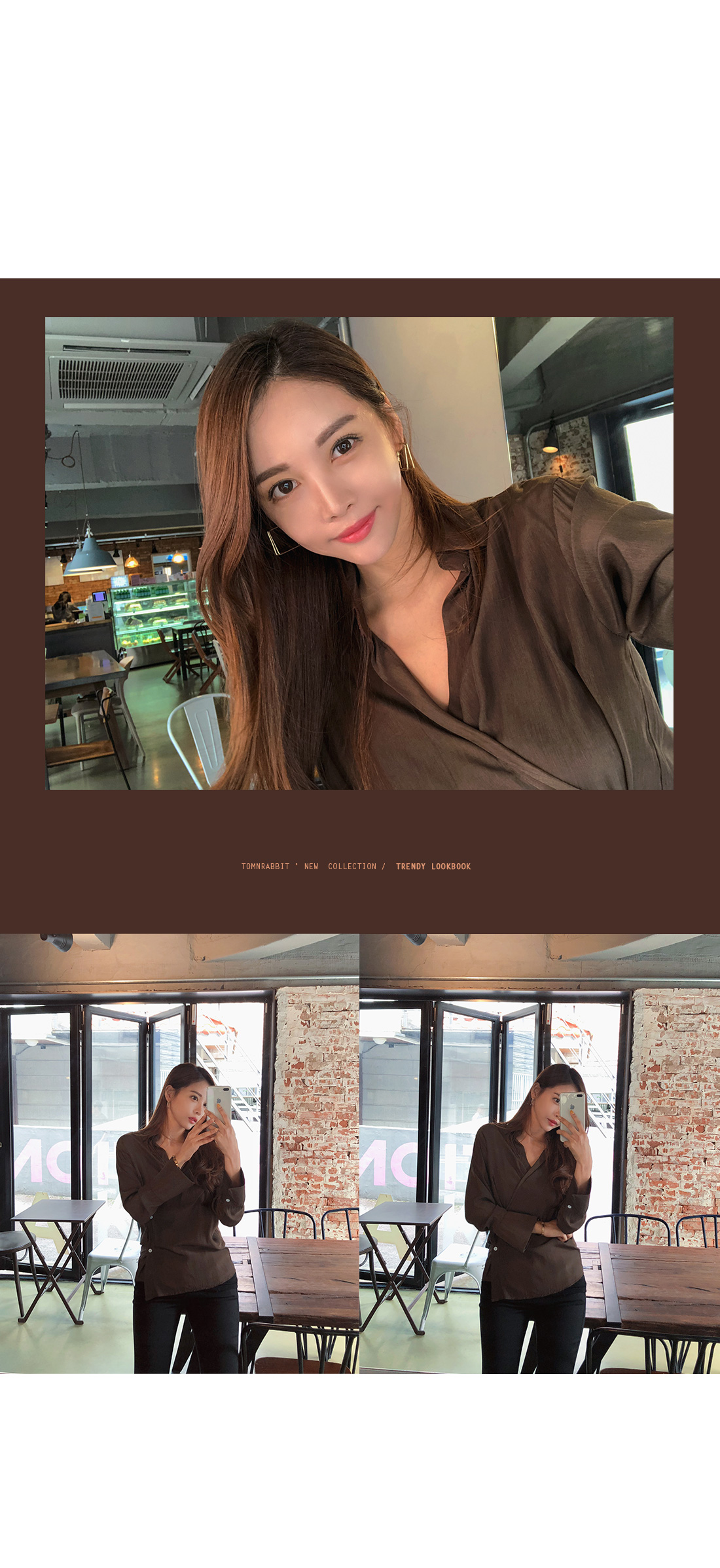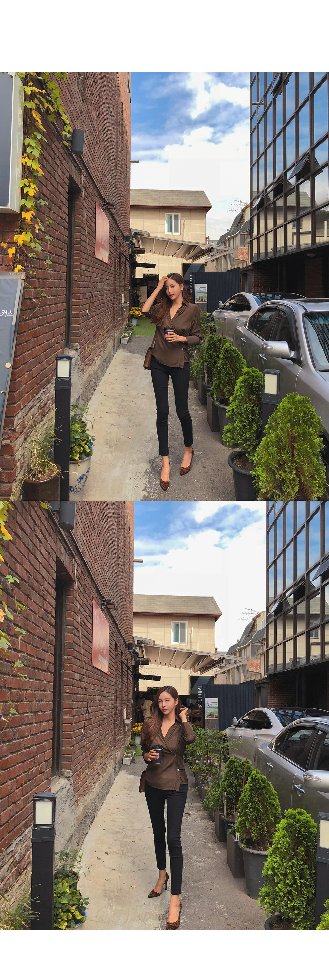 MD COMMENT 세련된 분위기를 연출해 줄 랩 블라우스를 소개할게요.기본 카라 디자인에 랩 스타일로 제작된 아이템이구요.전체적으로 은은한 광택감이 감도는 소재감으로 은근 고급스러우면서 세련된 무드를 가져갈 수 있어요.적당히 여유있는 핏과 기장감으로 부담없이 즐겨입기 좋구요.부드러운 터칭감의 폴리 소재로 바디에 닿는 느낌이 좋아기분 좋은 착용감을 느껴볼 수 있답니다^^안쪽에 단추 버튼으로 고정할 수 있어 안정감있게 착용이 가능해요.고급스러운 소재감에 베이직한 컬러들로 구성되어기본 하의 아이템과 매치해도 센스있는 스타일링을 연출해 줄블라우스 아이템으로 추천해요!오픈클로징은 프론트 단추버튼으로 도와드려요:)COLOR/SIZE 브라운,베이지FREEMODEL FITTING 브라운/FREE
