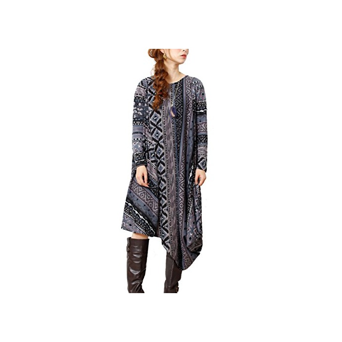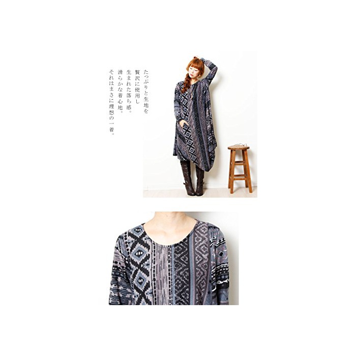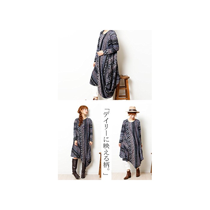 GoldJapan (Goldjapan)골드 재팬 큰 사이즈 큰 사이즈 레이디스 어른 엘레강트(elegant) 이국체 irregular 의복의 가장자리와 롱 원피스 긴 소매 체형 커버 불리 원피스 장