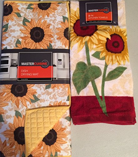 Master Cuisine Bundled -Sunflower Dish Drying Mat & Sunflower Kitchen Towels, 2-Pack
