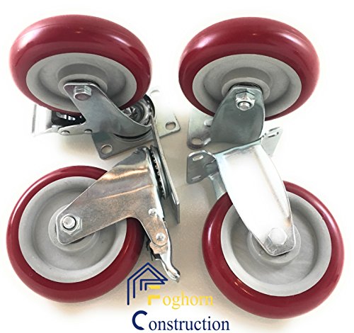 Poly Industrial Plate Caster set of 4 wheels - Sealed bearings - (choose 4" or 5" inch sets of 4 wheels) Foghorn Construction