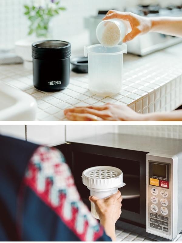 | 忙しい朝にレンジで1食分のご飯が炊ける弁当箱。あったかごはんをランチで気軽にお楽しみいただけます♪おうちで炊飯器代わりとしてもご利用いただけます。 |
