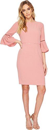 Adrianna Papell Women's Pleated Detail Textured Crepe Sheath, Antique Rose, 6