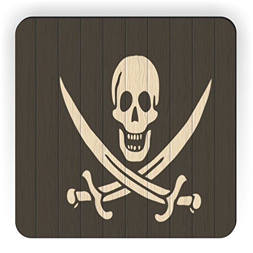 Rikki Knight Pirate Flag on Distressed Wood Design Square Fridge Magnet