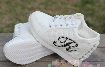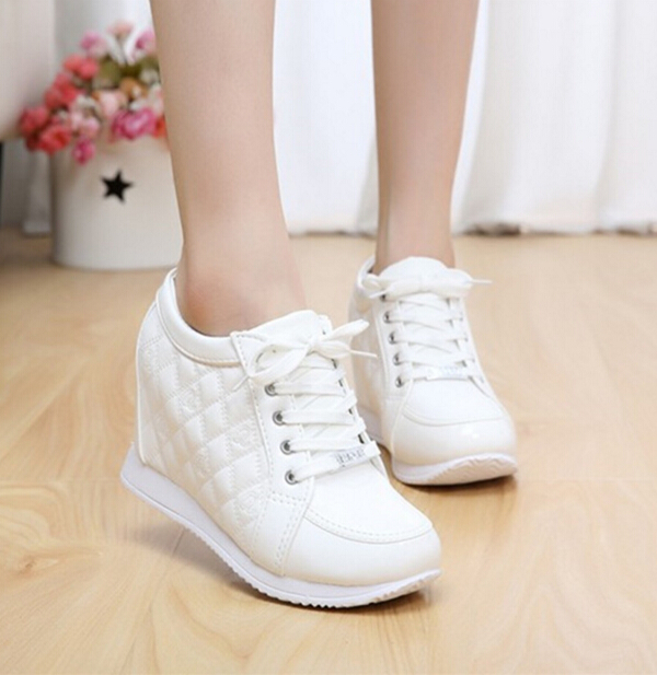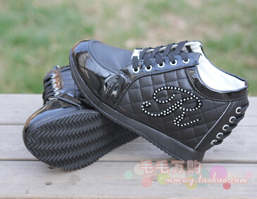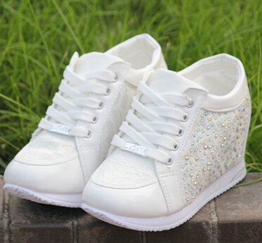 Hot Sales New 2017 Autumn Black White Hidden Wedge Heels Casual Shoes Women\ s Elevator High-heels boots For Women Rhinestone 1.Material : PU 2 Quality : high quality 3 For Stock :All color and size in stock ,can order direct 4 Pack: no box , in order to reduce the package weight 5 high heel:total 8CM 6 EU size:35.36.37.38.39