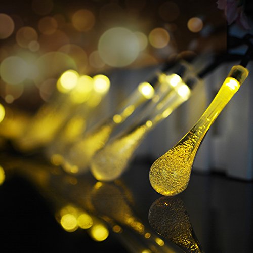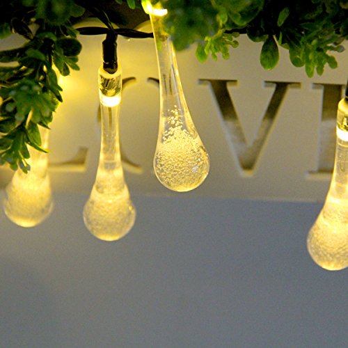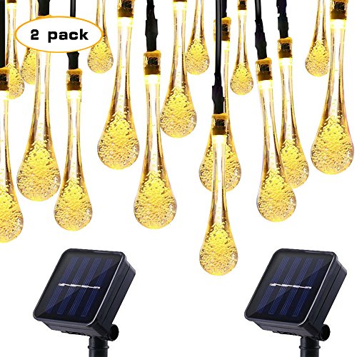 Lalapao Christmas lights 2 Pack 30 LED Solar String Lights Water Drop Fairy String outdoor decorations Waterproof Home Decor Light Perfect for Outdoor Indoor Patio Garden Party Wedding (Warm White)