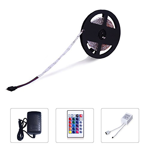 PKSTONE rgb Led Strip 3528 LED Flexible Strip Lights 16.4 Ft (5m) 300 Units SMD 12V Non-Waterproof Light Strips LED Ribbon DIY Christmas Holiday Home Kitchen Car Bar Indoor Outdoor Party Decoration