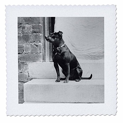 3dRose Vintage Terrier Named Bruce on Front Stoop Circa 1910 Dog Quilt Square, 12 x 12"