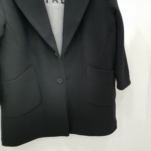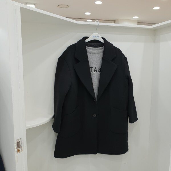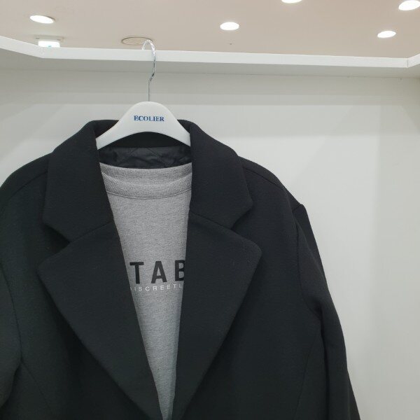 울과 폴리 혼방 모직 코트로 안쪽에 패딩 누빔안감으로 따뜻함을 더한 블랙 코트입니다