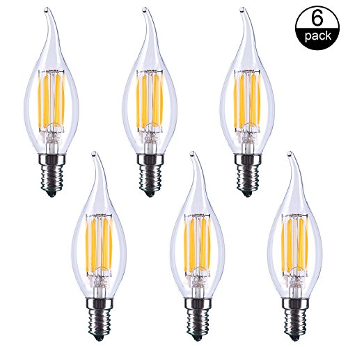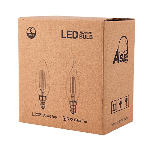 ASELIGHT 6W C35 A LED Filament Bulb ,Dimmable E12 2700K LED Light Bulbs,Led Bulbs, 60 Watt Incandescent Candle Bulbs Replacement,C37 2700K Warm White Bulbs,E12 C35-A LED Bulbs, 6 Pack