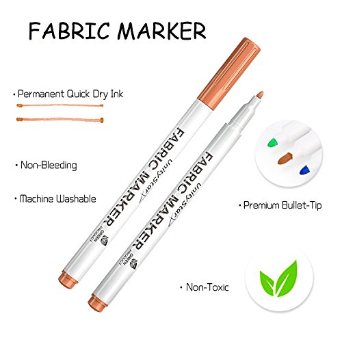 - 24 VIBRANT COLORS TO MIX & MATCH AS YOU LIKE: UnityStar Fabric Pens come with a good selection of 24 vibrant rainbow colors for you to mix and match for your personalized drawings. Strong pigment of each marker allows you to draw at least 250 meters.