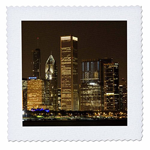 3dRose qs_90191_7 Chicago skyline at night, Illinois - US14 DFR0127 - David R. Frazier - Quilt Square, 18 by 18-Inch