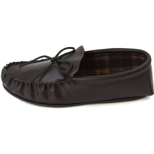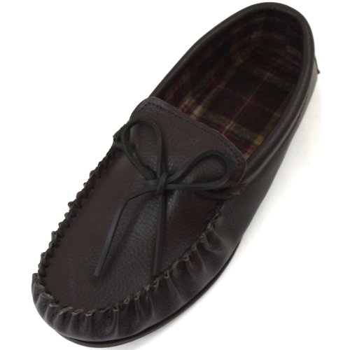 -. Title : Snugrugs Men's Leather Moccasin Slippers With Full Cotton Lining And Rubber Sole