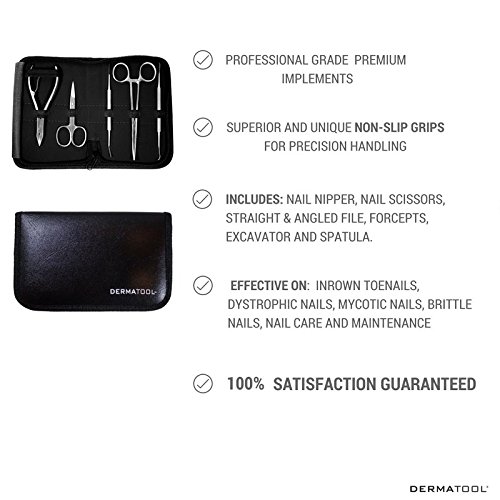 ✔ 5 HIGHEST & BEST QUALITY: Anvil Head Toenail Nipper, Angled & Straight Toenail File, Toenail lifter w/ packer and cleaning tip, Straight Nail Scissors, Hemostat clamp in Polished Finish with Case and User Guide