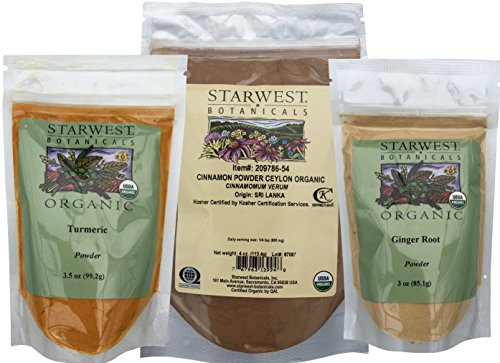 - This variety pack includes: 3.5 oz Organic Turmeric Powder , 3.5 oz Organic Ginger Root Powder and 4 oz Organic Ceylon Cinnamon Powder