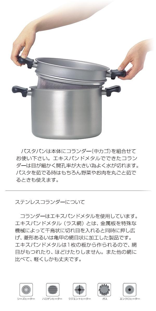 fk094igrjsパスタをゆでる時はもちろん、野菜やお肉を丸ごとゆでる時にも使えとても便利ですサイズW347×D237×H247mm個装サイズ:32×25×22cm重量個装重量:2300g素材・材質ステンレス鋼仕様満水容量:6.0L対応熱源:シーズヒーター、ハロゲンヒーター、ラジエントヒーター、ガス、エンクロヒーター※IHには対応しておりません食洗機不可製造国日本使いやすくあきのこないデザインパスタをゆでる時はもちろん、野菜やお肉を丸ごとゆでる時にも使えとても便利です