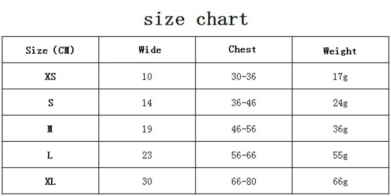 Width (cm):XS:10cm