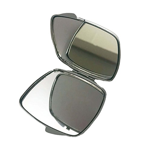 Silvertone metal compact square mirror. Measures 2.5" x 2.5" x .3". There are two mirrors inside this great compact. Great to have in your travel toiletry bags, to keep in your cosmetic cases both at home and on-the-go, and will fit neatly into your pocket. A perfect necessity for daily convenience