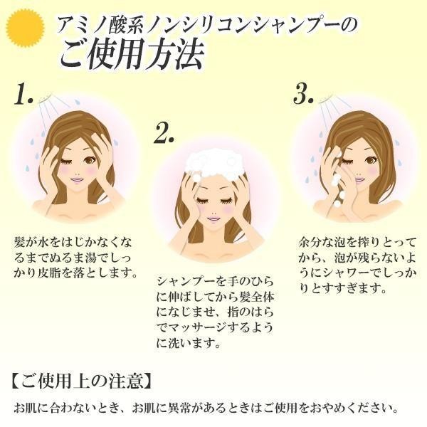 | 天然ヤシ油とアミノ酸から作る低刺激性のアミノ酸系シャンプーになっていますので、頭皮に優しく、敏感肌でお悩みの方にもオススメのノンシリコンシャンプーです。 |