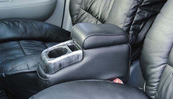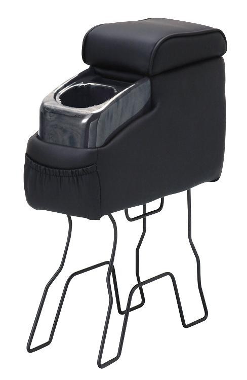 スチール脚部を車両のセンターコンソール部分に挟み込むだけの簡単取り付け。 PVCレザーで耐久性に優れています。