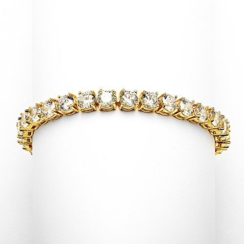 Make a dazzling grand entrance in this best-selling petite length Cubic Zirconia tennis bracelet by Mariell. With gleaming round-cut cz gems each meticulously pronged, this stunning Genuine 14 Karat Gold plated statement bracelet is the perfect jewelry choice for every special occasion. We have completely fallen for this bracelet's versatile "dress up" or "dress down" styling. At 6 1/2" long, our bridal bracelet abounds with a single row of the finest AAAAA quality CZ stones in a size to fit even the most delicate wrist. Each gemstone is cut with the same precision used on genuine diamonds to give you the look of fine jewelry at a fraction of the price. It's classic styling and 14 karat yellow gold plating will coordinate with hundreds of accessories in the Mariell Designs collection. Our gorgeous formal or wedding bracelet is also a top-seller for mothers of the bride, bridesmaids, holiday parties, proms, homecoming, Christmas gifts or any time you need an impressive, elegant gift. After your special occasion frocks are neatly tucked back in the closet, slip on this sophisticated bracelet with your business attire or everyday wardrobe to add a fabulous splash of sparkle. With that irresistible "look of real", this top-selling dazzler is sure to delight or your money-back. Treat yourself or "that someone special" to the gift of understated glamour. Enjoy Mariell's exclusive Risk-Free Purchase and Lifetime Guarantee.Feature