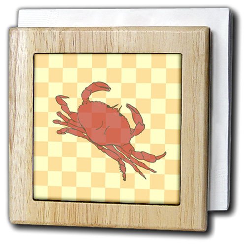 3dRose nh_56181_1 Red Crab on Yellow Checkered Background Ocean and Beach Themes Wall Art, Natural