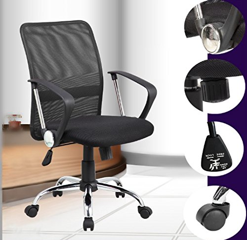 -. Brand : Anji EuroStile Furniture -. Color : Black -. EAN : 4697103678760 -. Feature : Material:Mesh around chair including PP and Chrome armrset good for your skin perfectly provide you have an extremely comfortable seating / Function:The whole chair can rocked back and forth which is suitable for napping and seating during busy working days and wondeful experience in intense gaming moment. / Design:360 Degree Swivel and Multi-direction Wheel Move Smoothly On Floor,Built-In Lumbar Support Heavy Duty Nylon Base with Dual Wheel Carpet Casters / One Touch Pneumatic Seat Height Adjustment ,Tilt Tension Adjustment Knob -. Label : United Chairs -. Manufacturer : United Chairs -. Model : 8075 -. MPN : 8075BK -. PackageQuantity : 1 -. PartNumber : 8075BK -. ProductGroup : Furniture -. ProductTypeName : HOME_FURNITURE_AND_DECOR -. Publisher : United Chairs -. Studio : United Chairs -. Title : Mid-Back Swivel Mesh Seat Computer Swivel Lumbar Support 8075 BK
