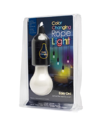 This amazing Rope Light Bulb is battery operated and hangs anywhere! One set of fresh AAA batteries (not included, it uses 3) lasted in our test at ShopWildThings for 7 days, 24 hours per day. We tested 6 units with the same results! Just pull the cord to turn on, and turn off. Try hanging these in a group for an awesome color-changing experience. The lightbulb is white in color, and is not super bright until the lights are getting dim. These look the best at sunset and after dark but will still show some in lit areas, jut not as bright. We notice that there are some negative reviews on this product sold by other sellers, and we checked with the manufacturer on this. Those reviews were from a bad batch of product, and those problems have been solved at the factory level. Every unit that we've sold on our site and that we have tested have been completely amazing and have worked with no issues whatever. Also, these are CE rated, meaning that they have been tested to stringent U.S. manufacturing standards for safety. If you see these for significanly cheaper, please use caution. Even battery operated goods can catch fire! Enjoy, and check out ShopWildThings video for this awesome LED Rope Light.Feature